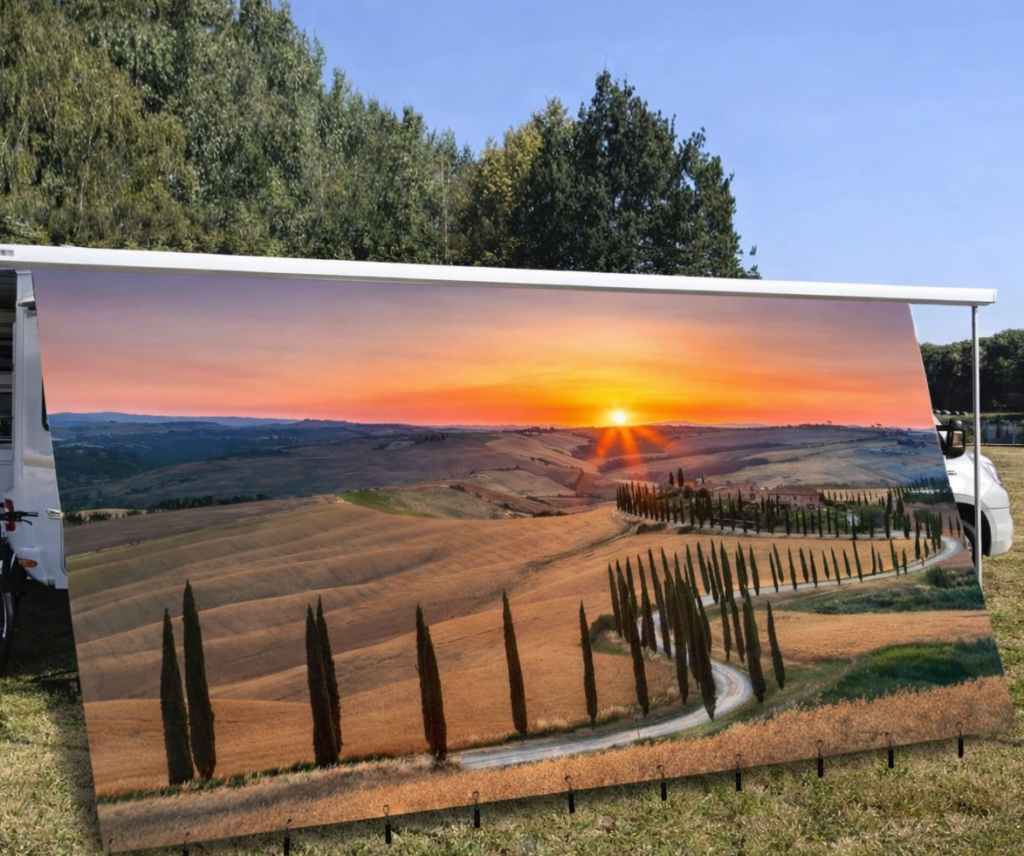 Bedruckte Mesh-Banner für Markise & Frontscheibe am Wohnmobil